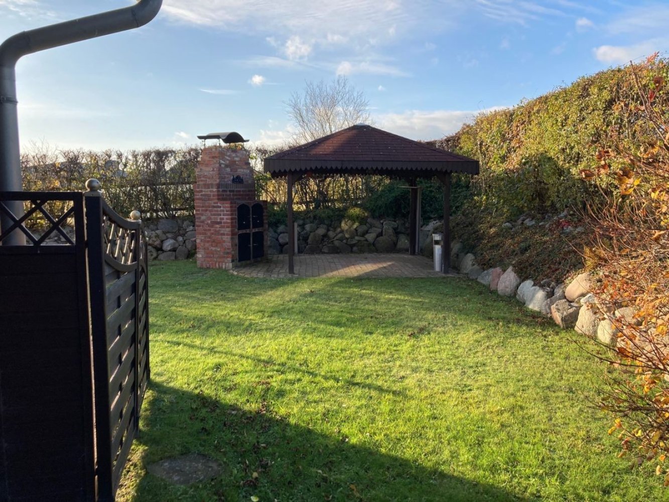 Im Garten des Hauses befindet sich ein Grillplatz mit Holzkohlegrill.