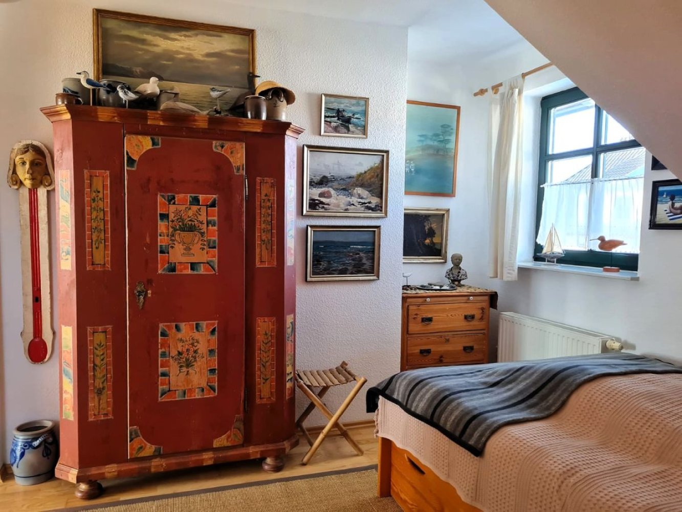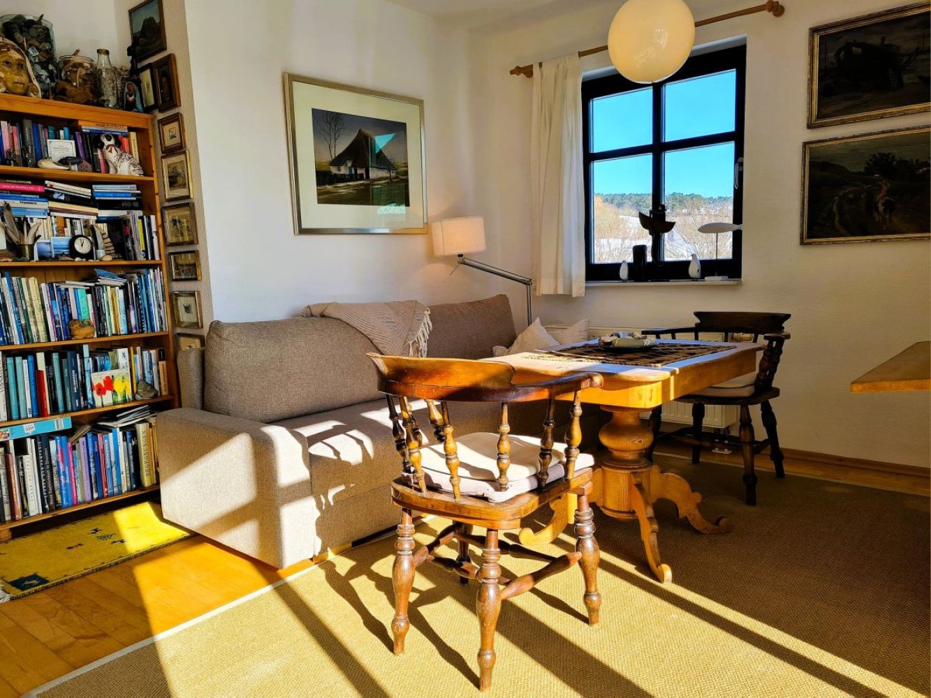 Es erwartet Sie eine Künstlerwohnung im besonderen Stil. Im Obergeschoss der kleinen Anlagen mit direktem Blick auf den Greifswalder Bodden.