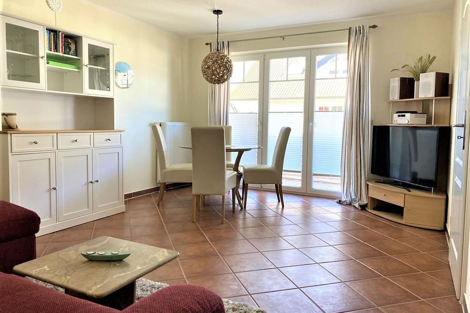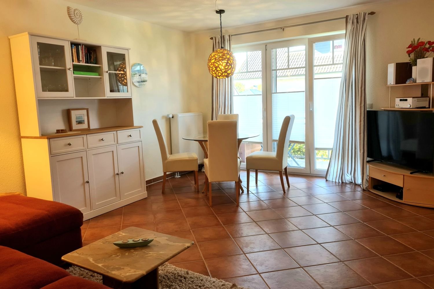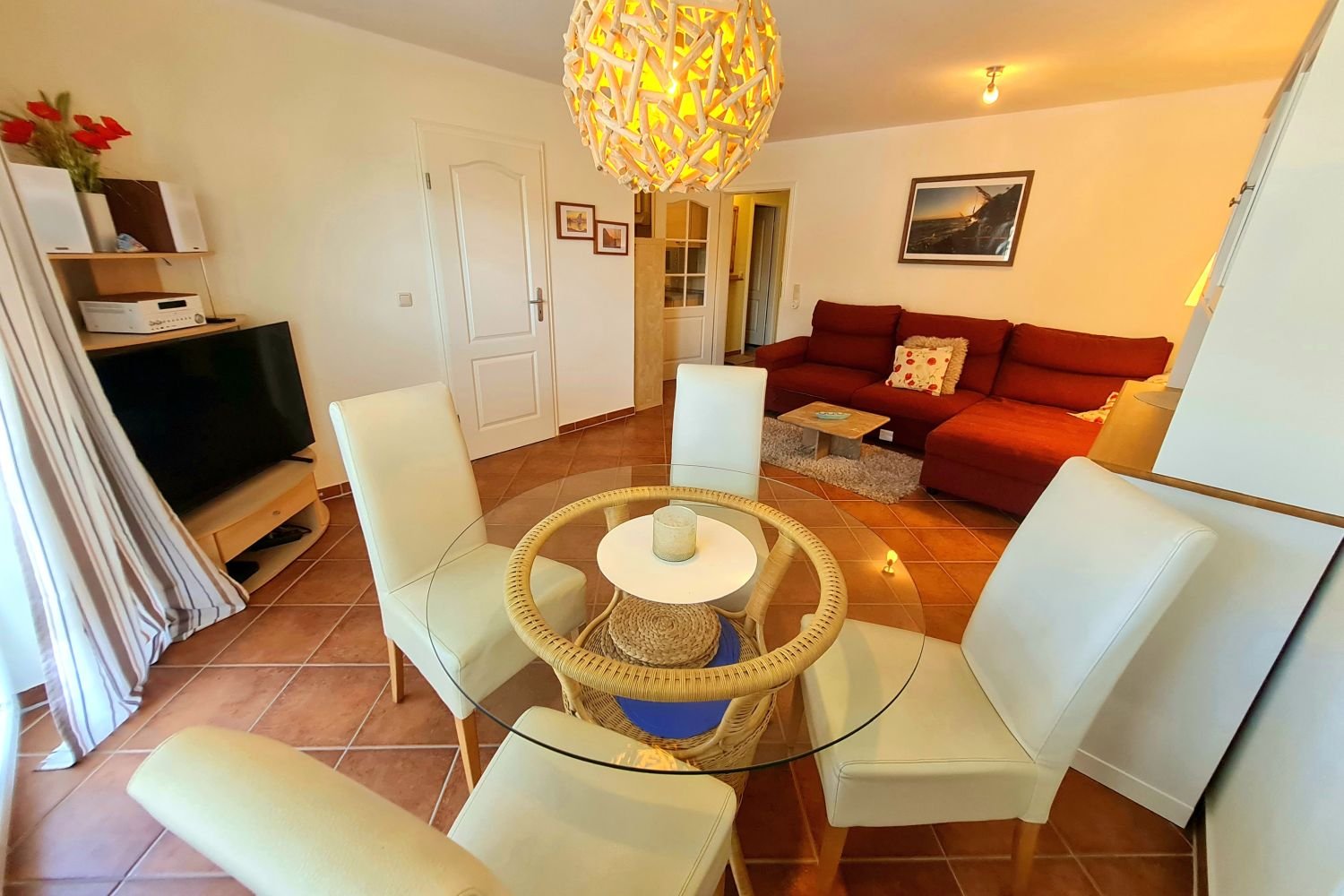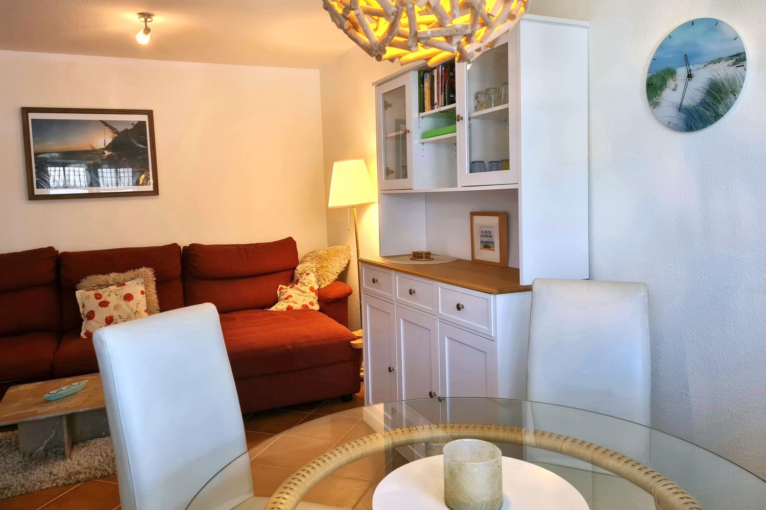 Das 2-Raum-Appartement mit 52qm verfügt über einen geräumigen, mit viel Liebe zum Detail eingerichteten Wohnbereich mit einem gemütlichen Schlafsofa für zusätzliche Unterbringungsmöglichkeiten.