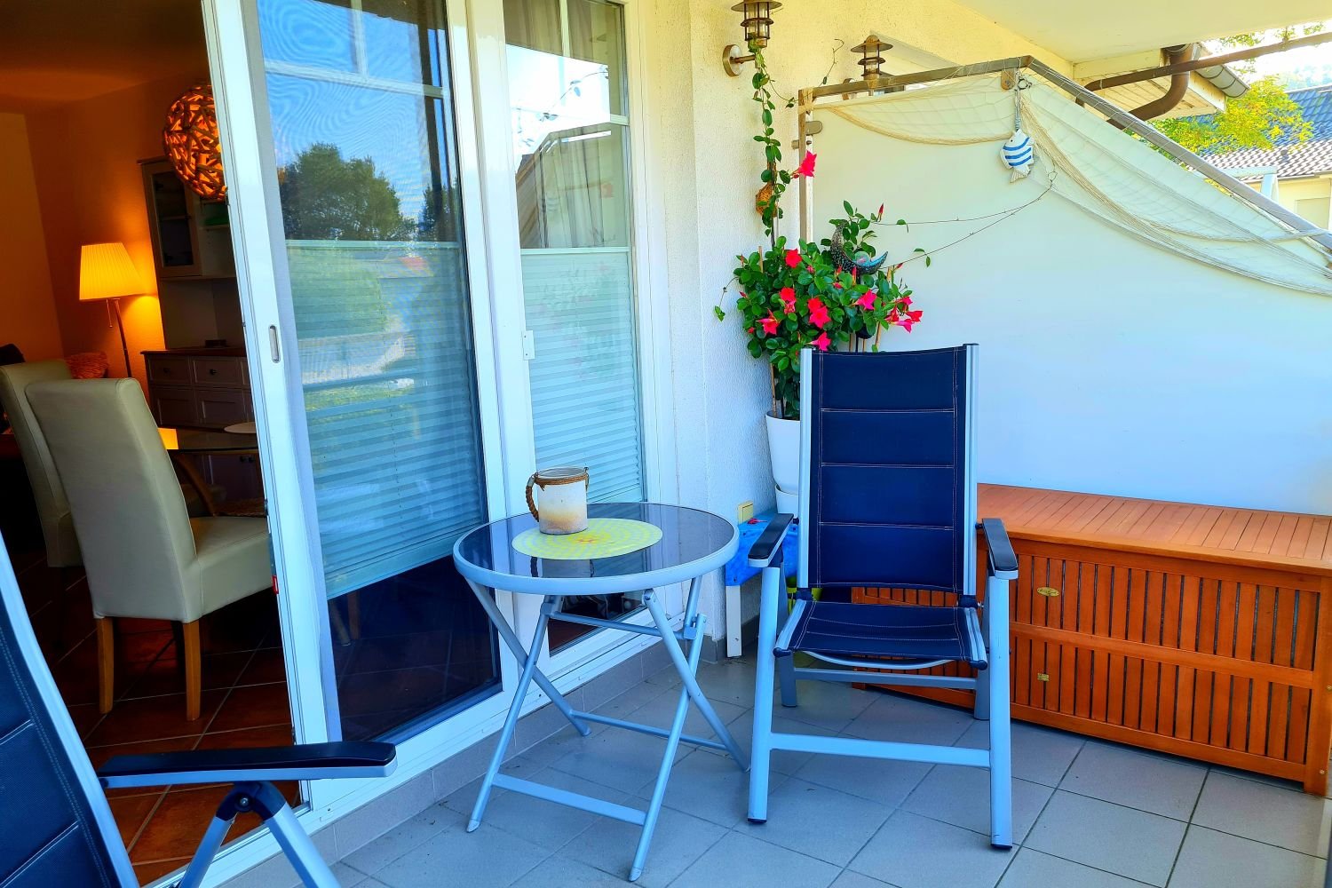 Es handelt sich bei der Ferienwohnung Sonnenschein um eine geräumige Ferienwohnung im 1. OG des Hauses mit einem bestuhlten Balkon in Süd-West-Ausrichtung, so dass Sie gemütlich in der Abendsonne bei einem Getränk ihrer Wahl zusammen klönen können.