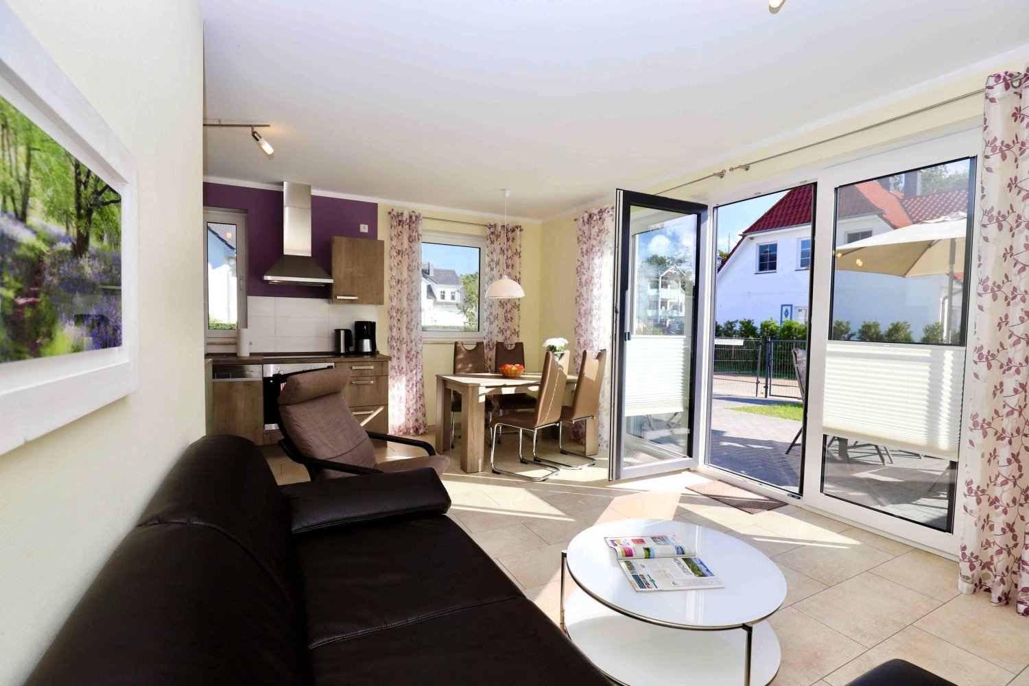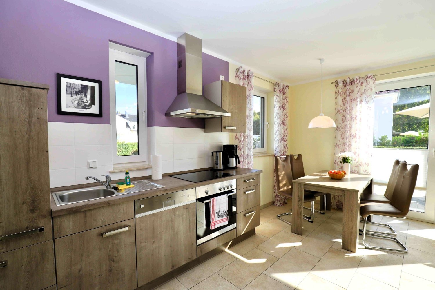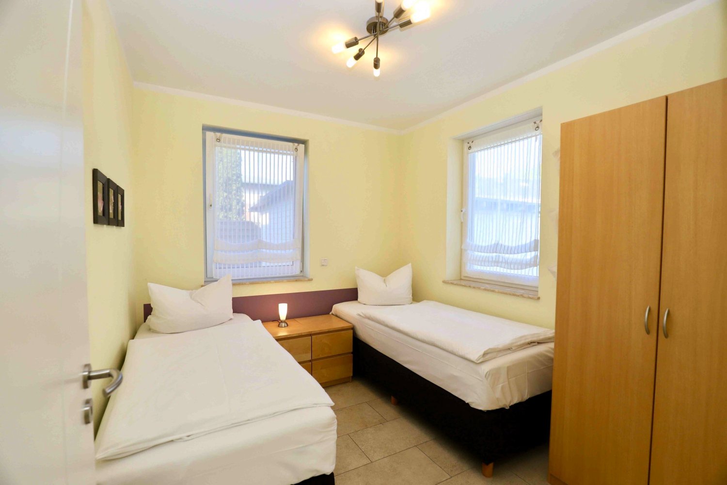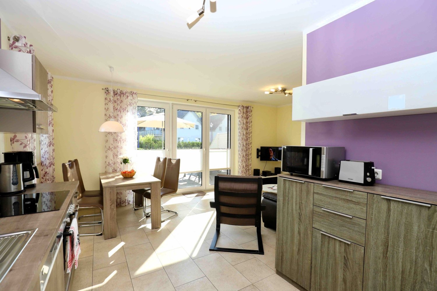 Ihre Ferienwohnung Seglerparadies bietet Ihnen zwei separate Schalzimmer mit insgesamt 4 Betten (Normalgröße 90x200), ebenso eine Wohnküche mit allem Zubehör und ein gemütliches Wohnzimmer mit TV zum Klönen. Vom Wohnzimmer aus gehen Sie durch ihre große Terrassentür auf die Terrasse mit bequemen Sitzmöbel und einem Vorgarten - alles in SÜD - Ausrichtung mit Sonnengarantie. In der schönen Wohnung ist weiter ein Bad mit ebenerdiger Dusche, Waschbecken / WC und Fenster inkludiert. Zusätzlich wird eine Waschmaschine zur Nutzung angeboten.